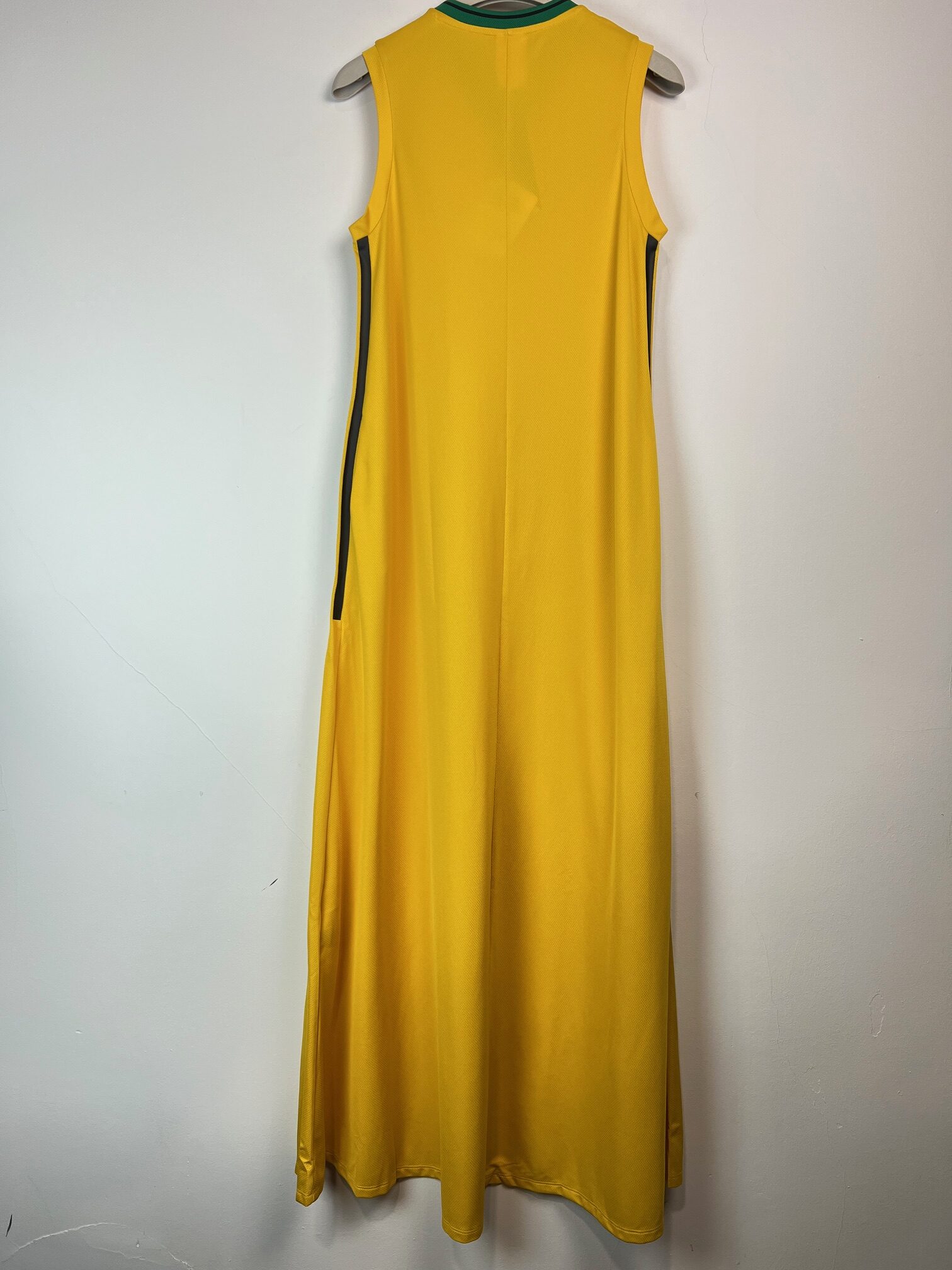Sukienka Adidas Performance, w kolorze żółtym, bardzo długa, rozmiar z metki 34-36, posiada 2 kieszenie po bokach, produkt sample.