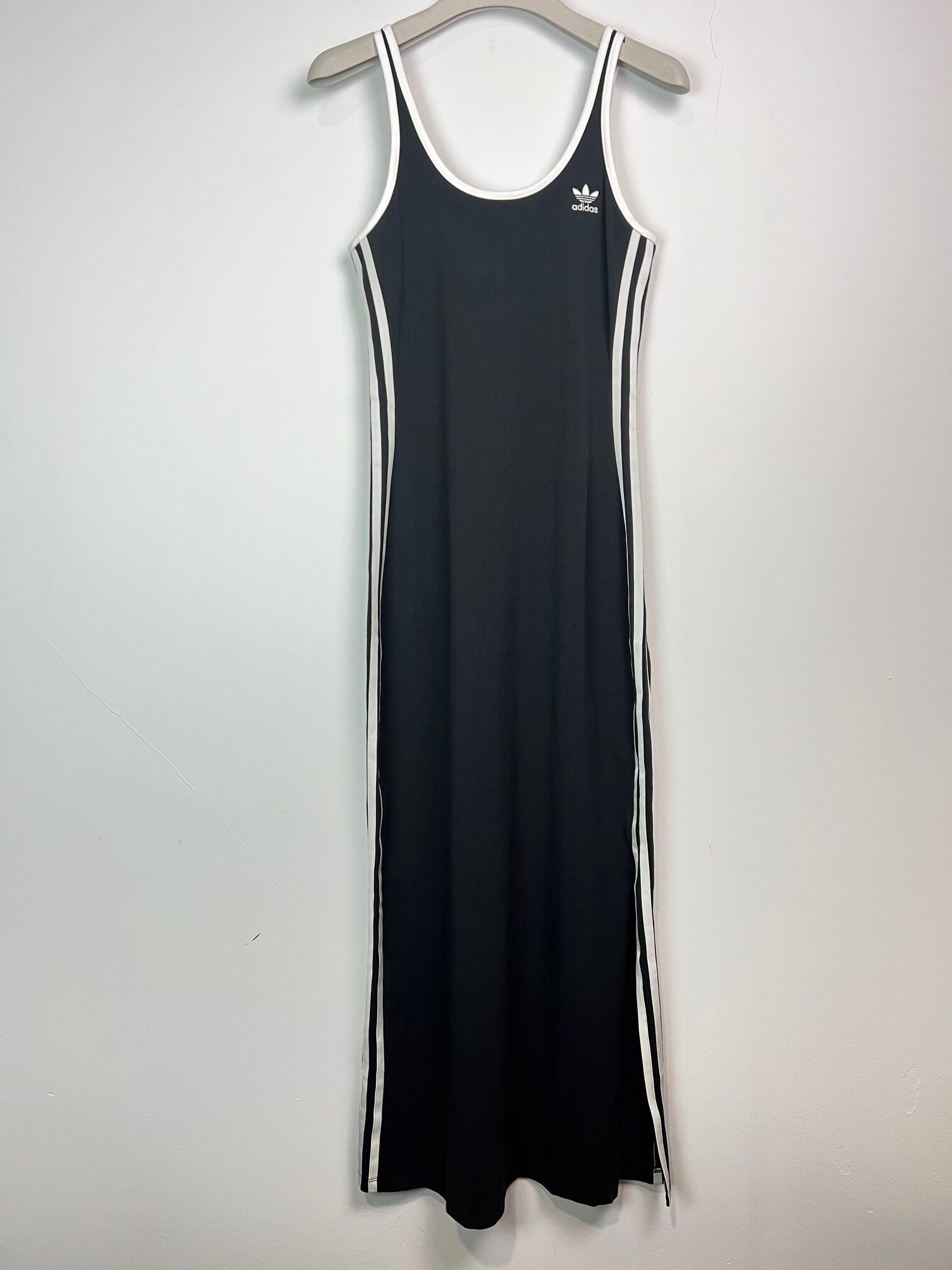 Sukienka na ramiączkach Adidas Originals, czarna z rozcięcien ma dole, rozmiar z metki 34-36, metka z kodem produktu wycięta.