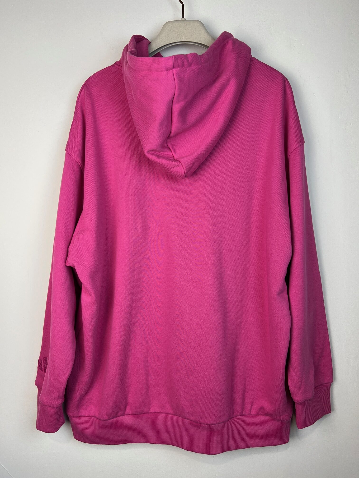 Bluza Adidas Performance x Jeremy Scott, różowa unisex z kapturem, z przodu napis Adidas, logo Performance na rękawie, metka z kodem produktu wycięta..