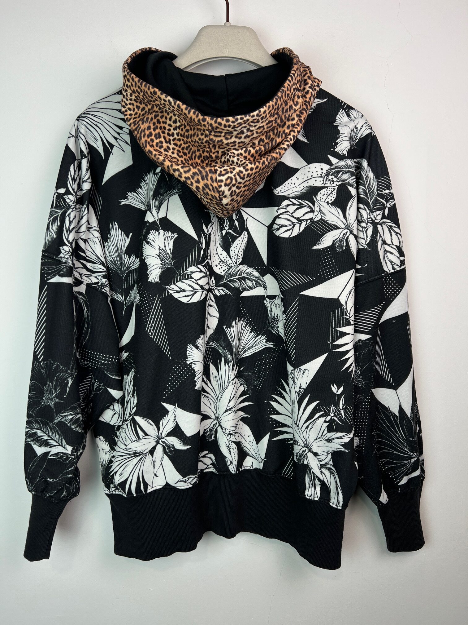 Bluza damska Adidas Originals x Farm, z kapturem we wzór pantarki, multicolor, wkładana przez głowę, kolorowa góra bluzy haftowana, z przodu 1 kieszeń centralna kangurka, rozmiar z metki 36.