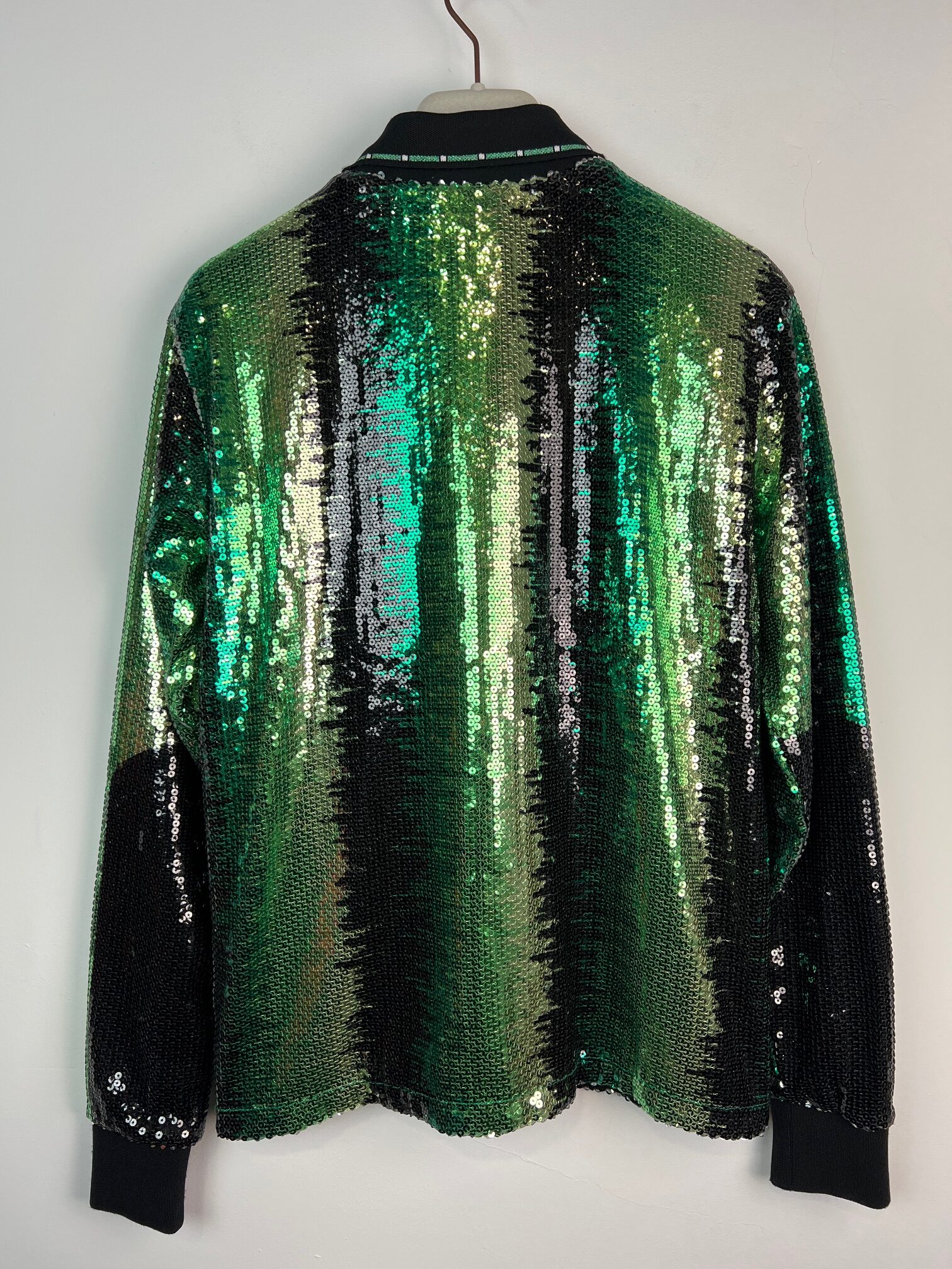 Bluza damska cekinowa Adidas x Anna Isoniemi, z kołnierzykiem, w stylu piłkarskim, z czarnymi ściągaczami, z podszewką w środku, rosmiar z metki 36.