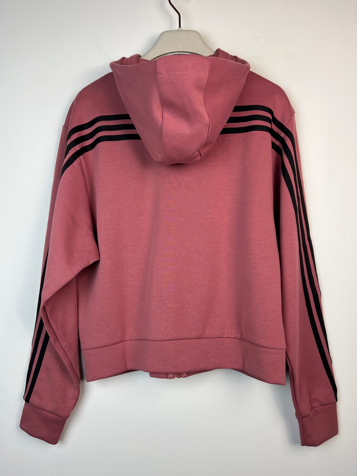 Bluza damska z kapturem Adidas Performance, kolor brudny różowy, zapinana na zamek, z przodu 2 otwarte kieszenie, rozmiar z metki 34-36, metka z kodem produktu wycięta.