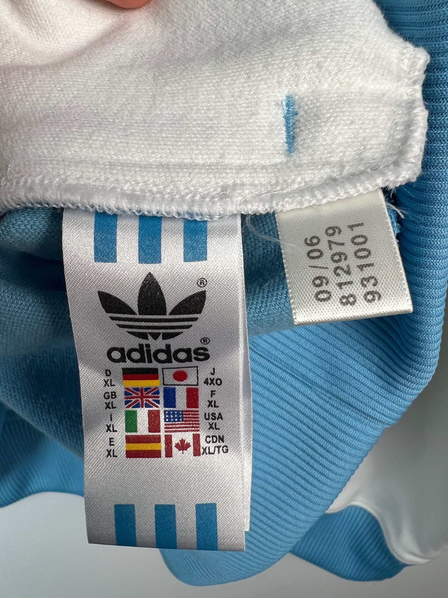Bluza męska Adidas Guatemala, limitowana, model 2006 rok, z wysokim kołnierzem, haftowane logo, zapinana na zamek, błękitna, 2 kieszenie na zamek, luźny i długi krój.