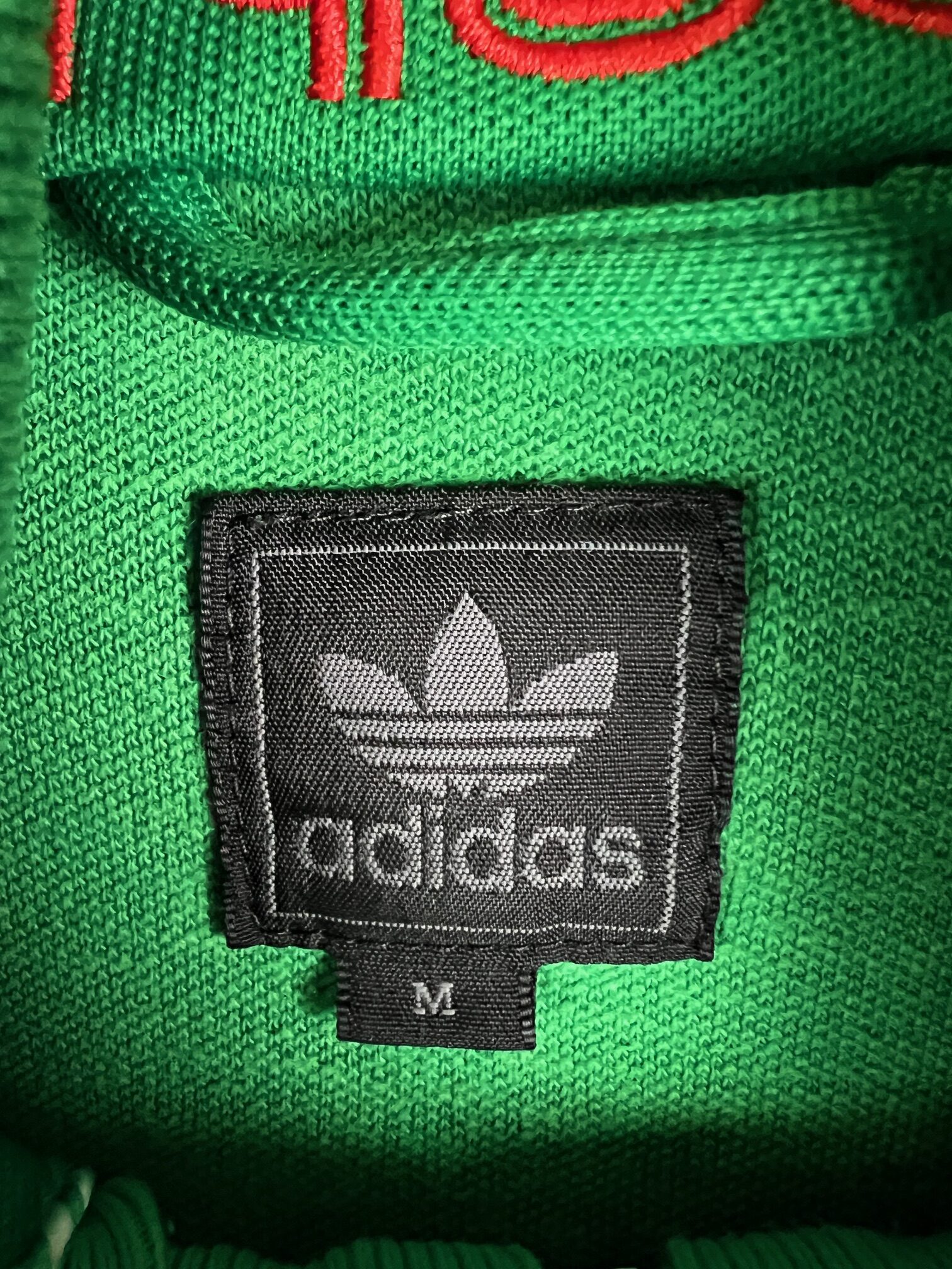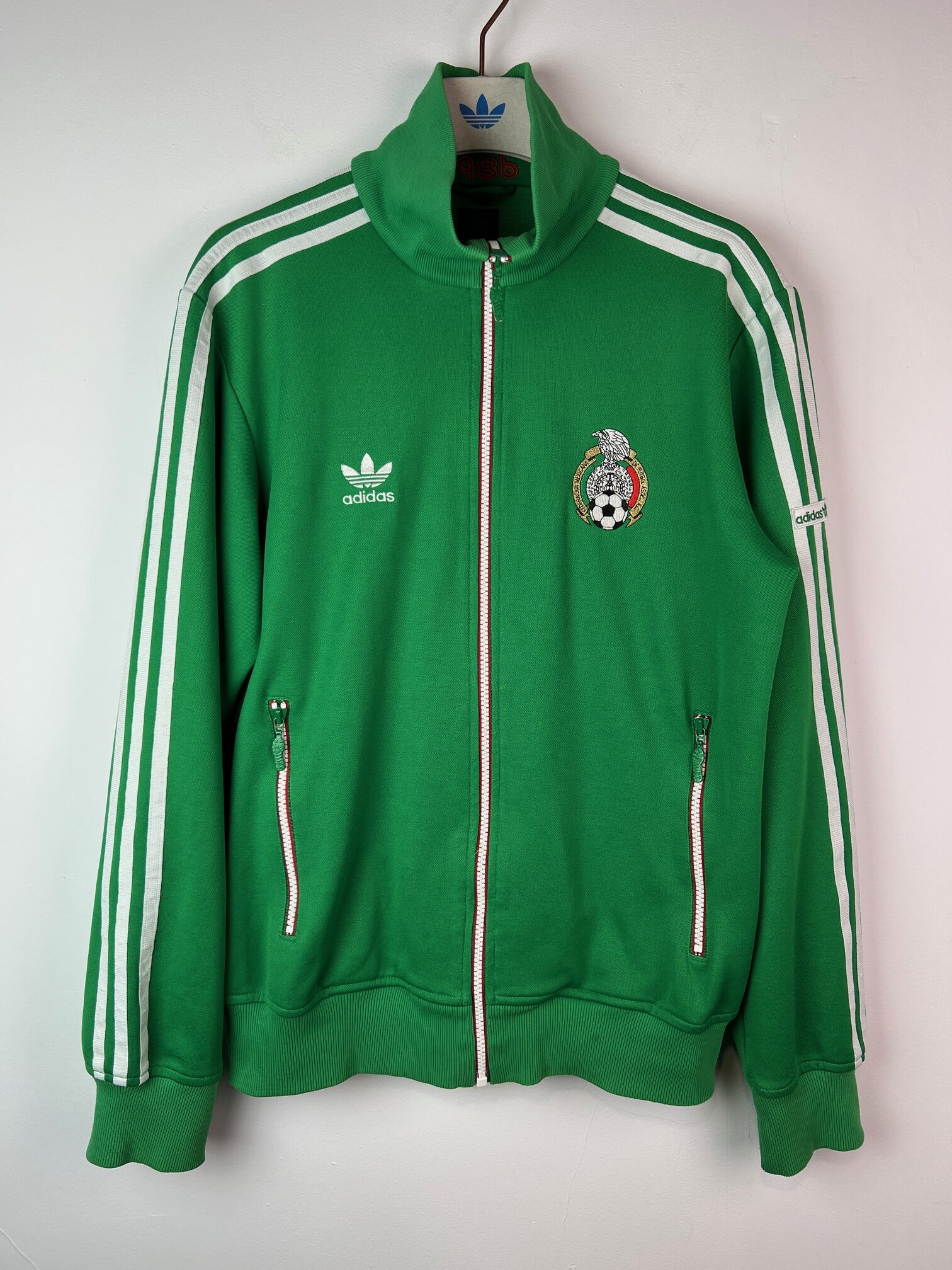 Bluza męska Adidas Originals Mexico FIFA 2010 zielona, zapinana na zamek, 2 kieszenie na zamek, z tyłu na plecach napis Mexico, , zawieszki na zamkach w kształcie korków piłkarskich.
