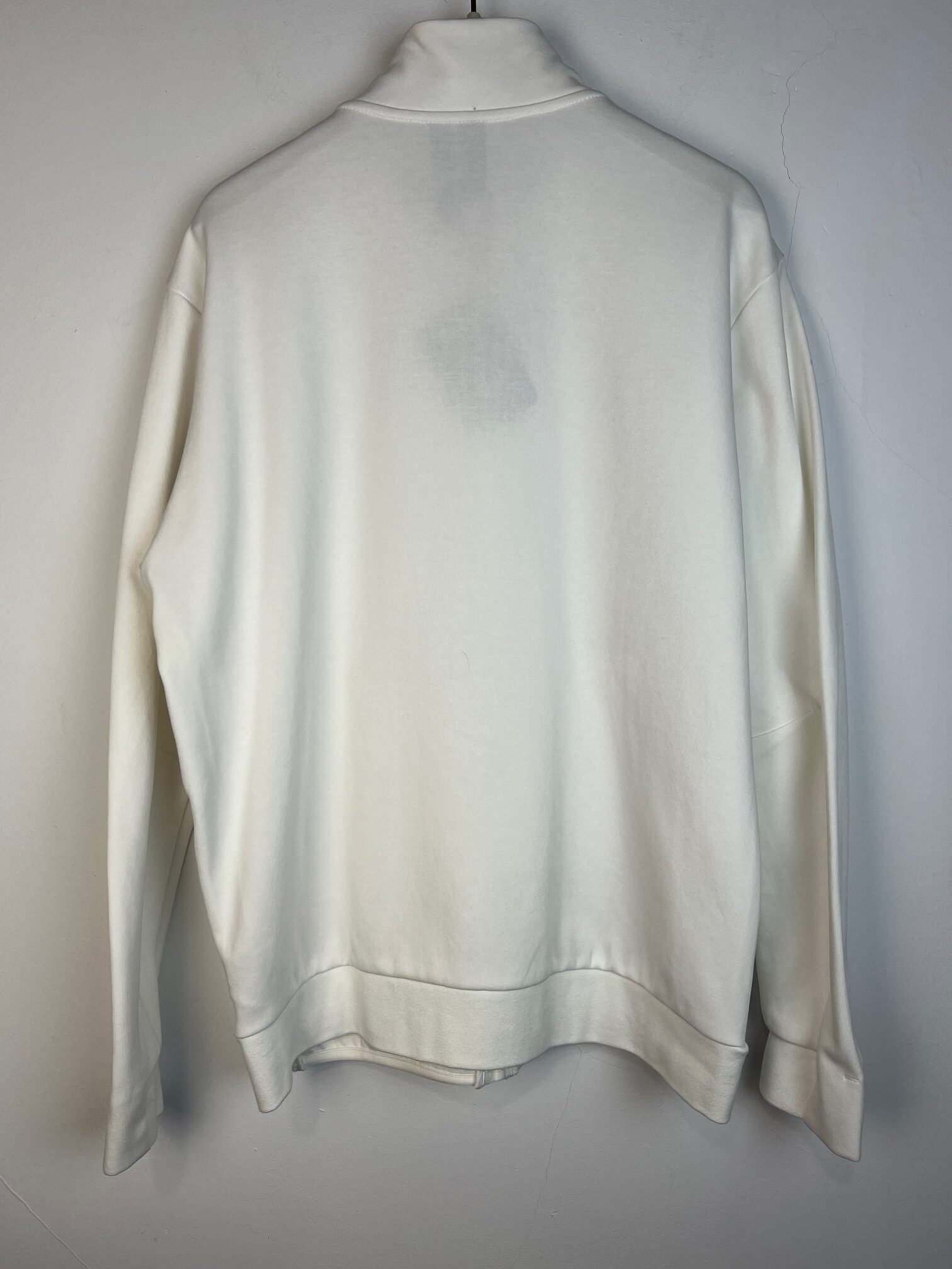 Bluza męska klubowa Adidas Real Madryt, biała, zapinana na zamek, 1 kieszeń otwarta, 1 kieszeń na zamek.