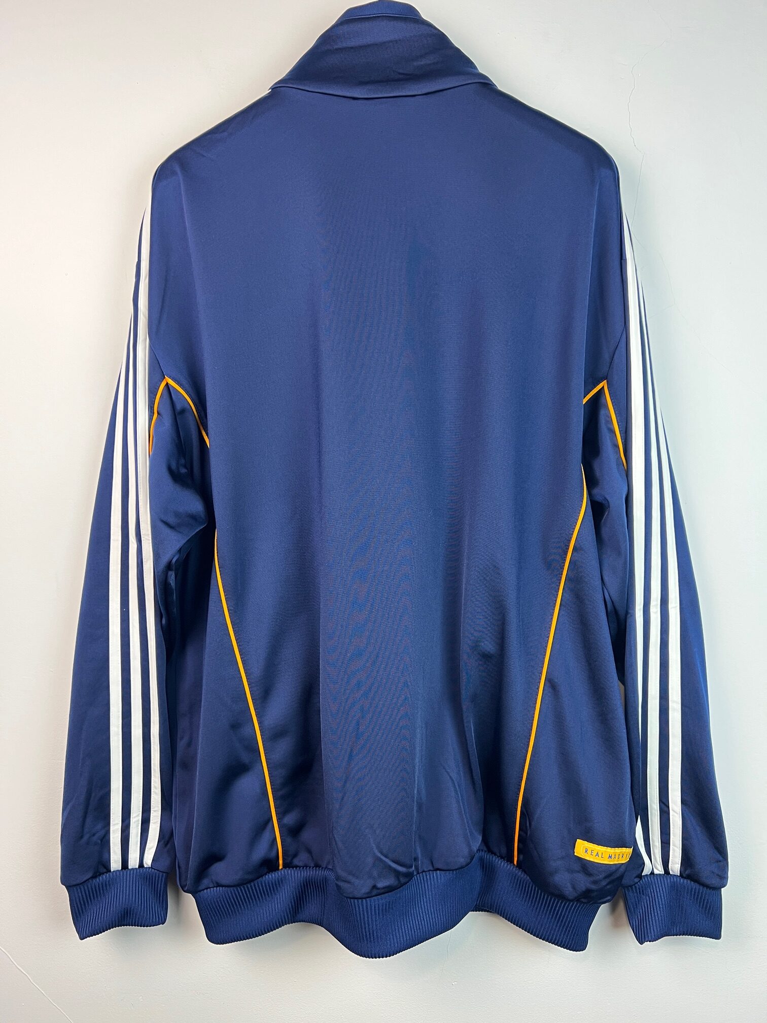 Bluza treningowa Adidas Real Madrid, stylizowana na vintage, zapinana na zamek, 2 kieszenie na zamek, metka z kodem produktu wycięta.