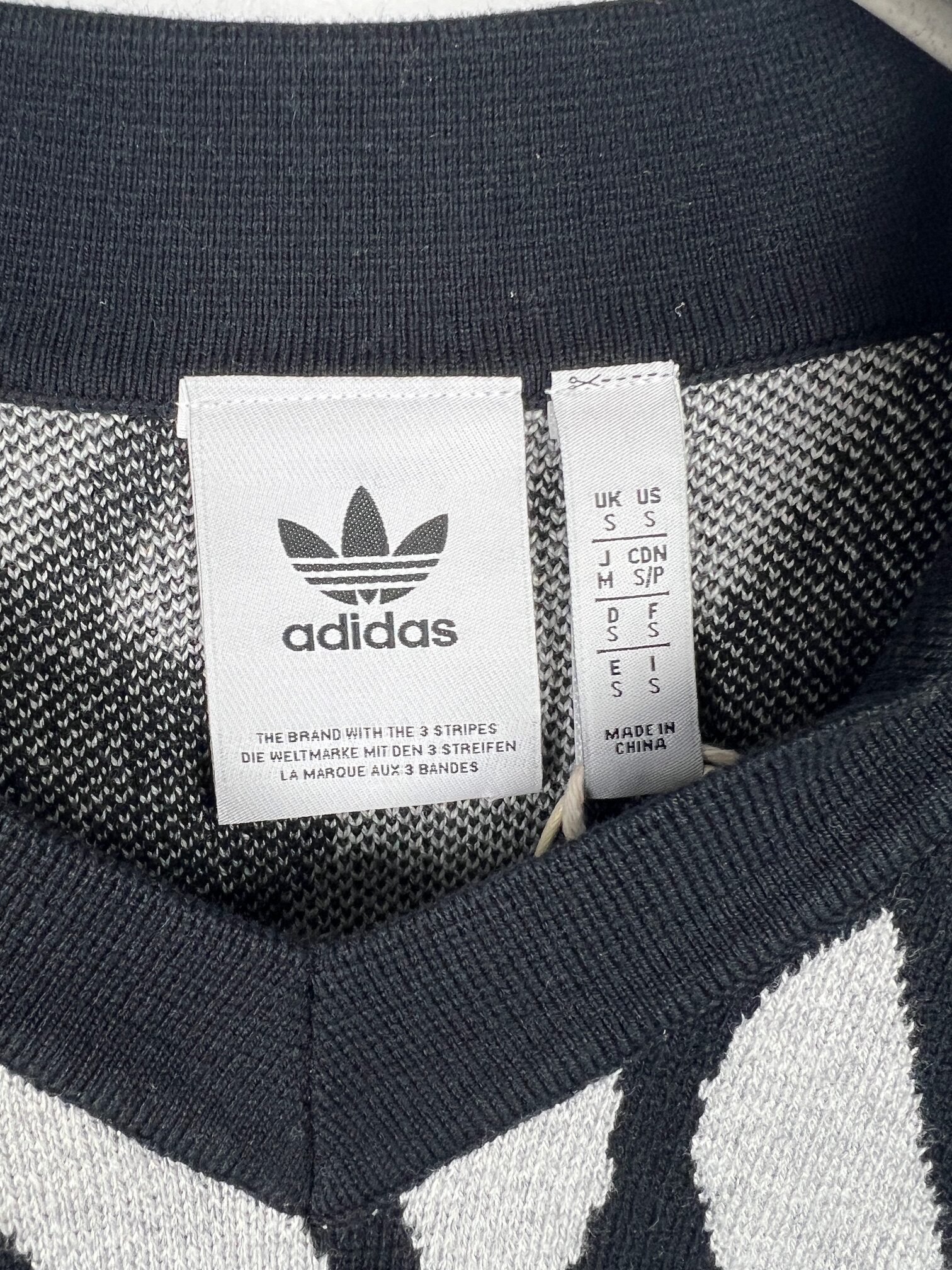 Sweter męski Adidas Originals Remix Retro, czarno-biały, z kołnierzykiem, krój luźny, nowy bez metki, metka z kodem produktu wycięta.