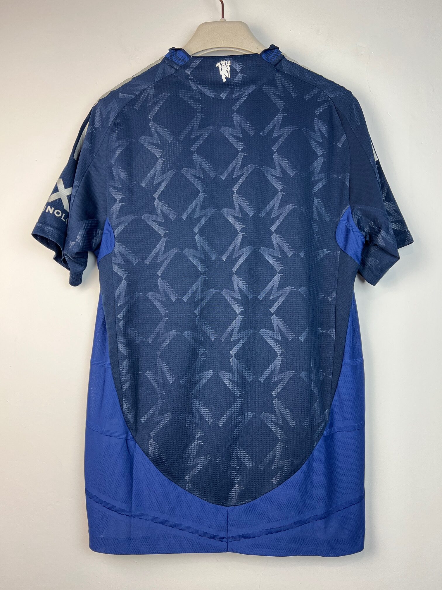 Autentyczna koszulka wyjazdowa klubowa Adidas Manchester United sezon 24\25, godło naniesione termotransferem, krój polo z 1 guzikiem, kolor night indigo, krój dopasowany, nowa z metkami.
