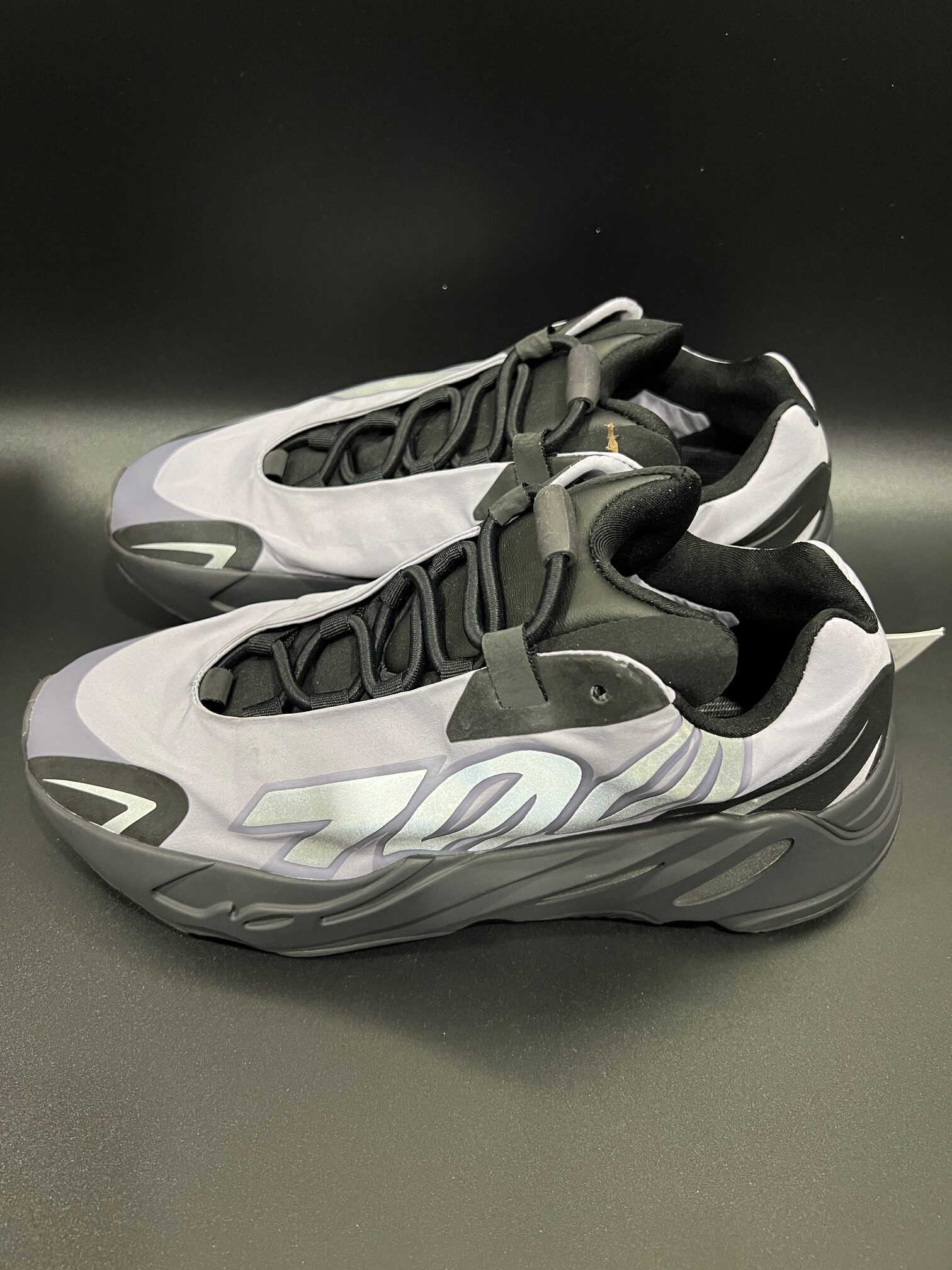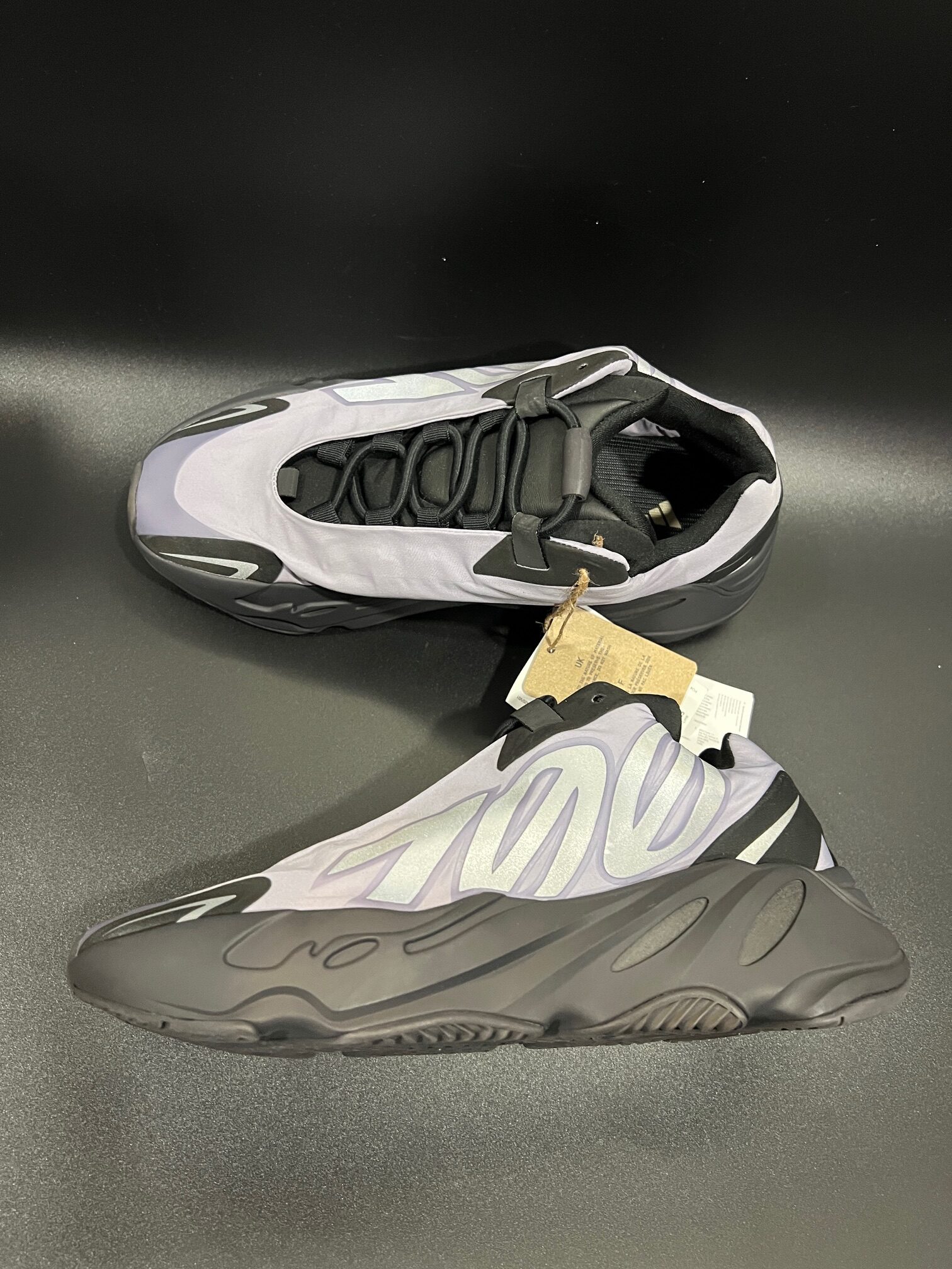 Sneakersy Adidas x Yeezy Boost 700 MNVN Geode, kolor jasnofioletowy, na podeszwie boost, nowe z metkami, bez oryginalnego pudełka.